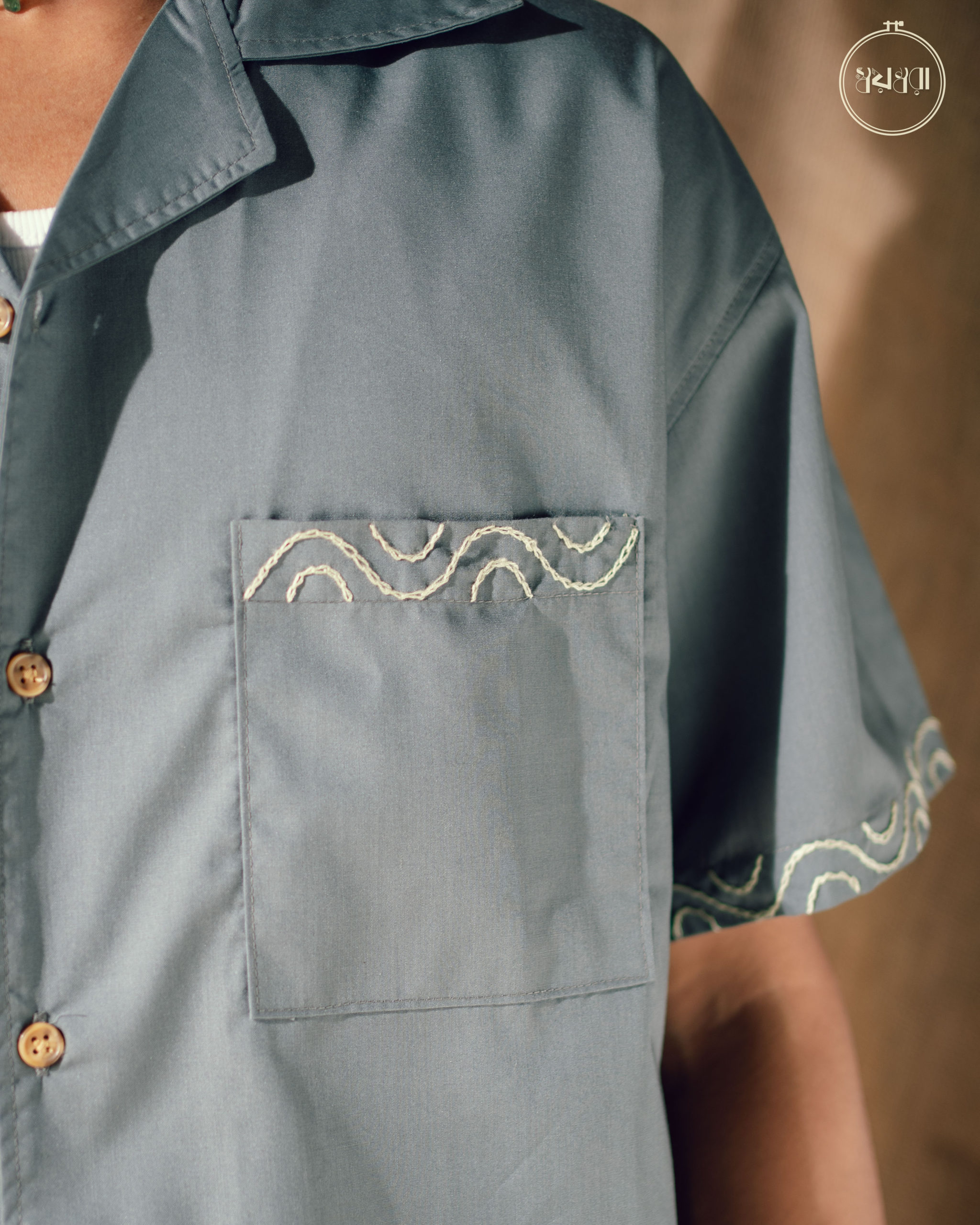 Like waves against stone, Grey Wave carries calm movement in its embroidery—crafted on soft ash fabric that feels timeless.