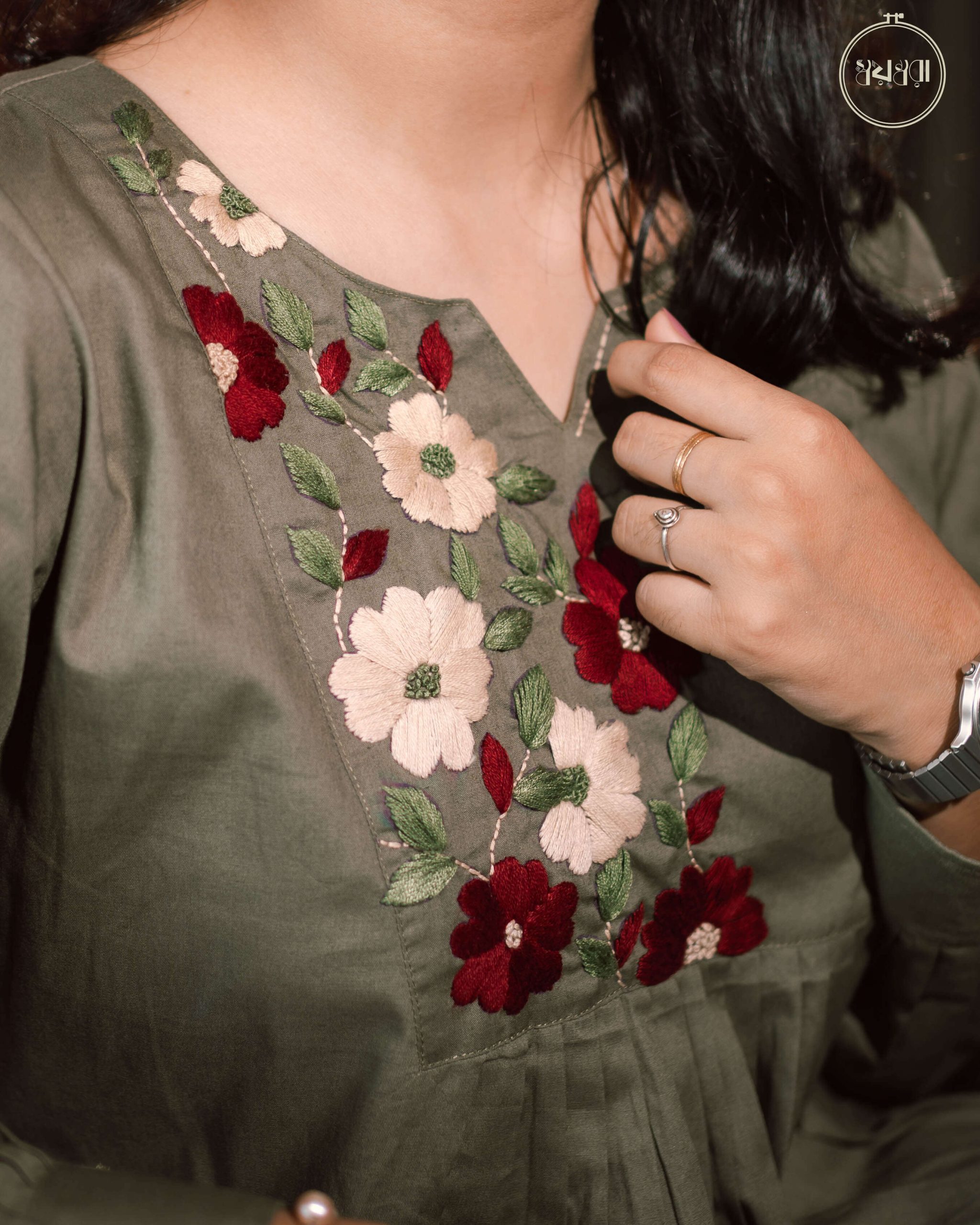 Olive Ember embraces earthy elegance with gentle tones, flowing design, and subtle embroidery. A perfect blend of calm and soulful style.
