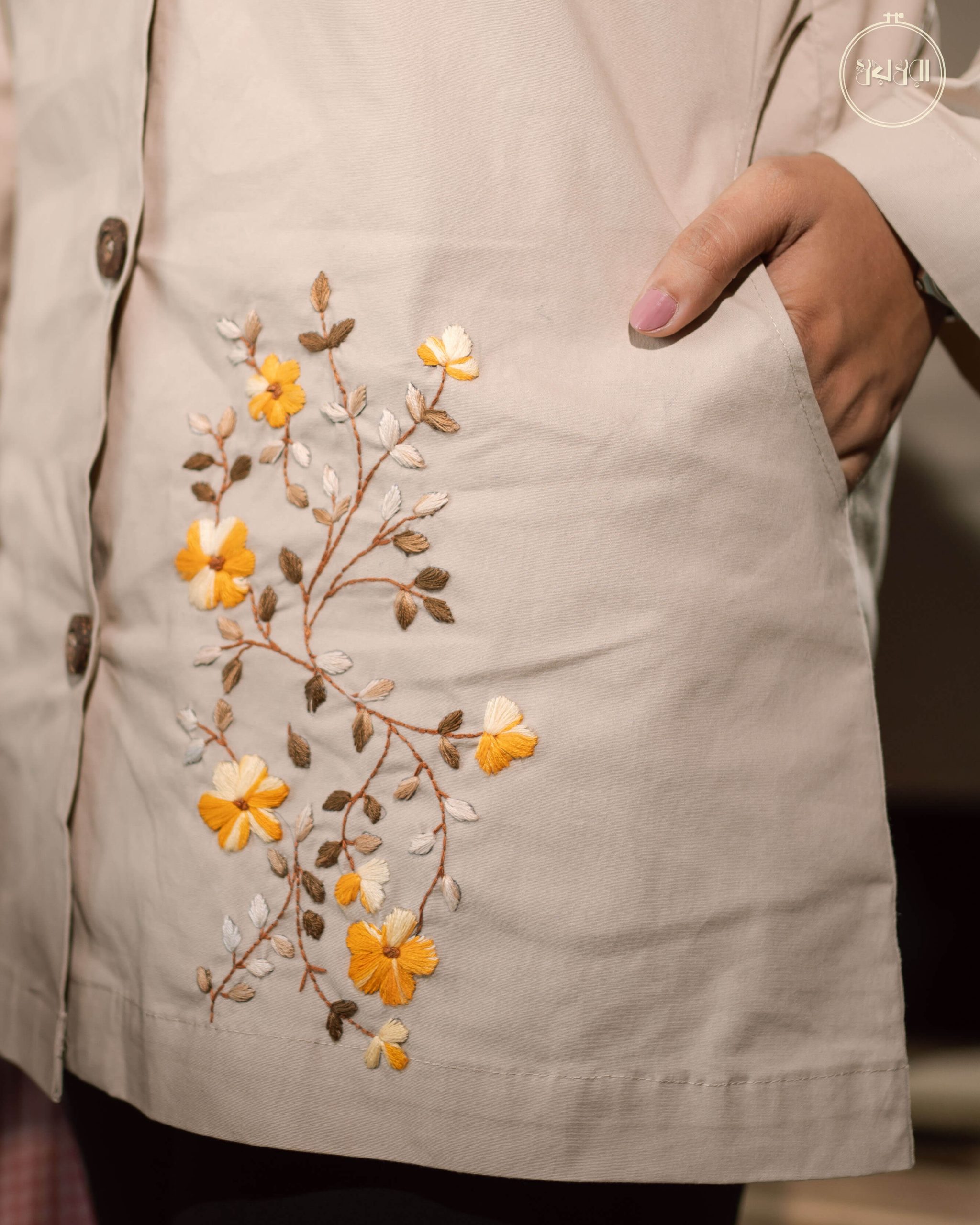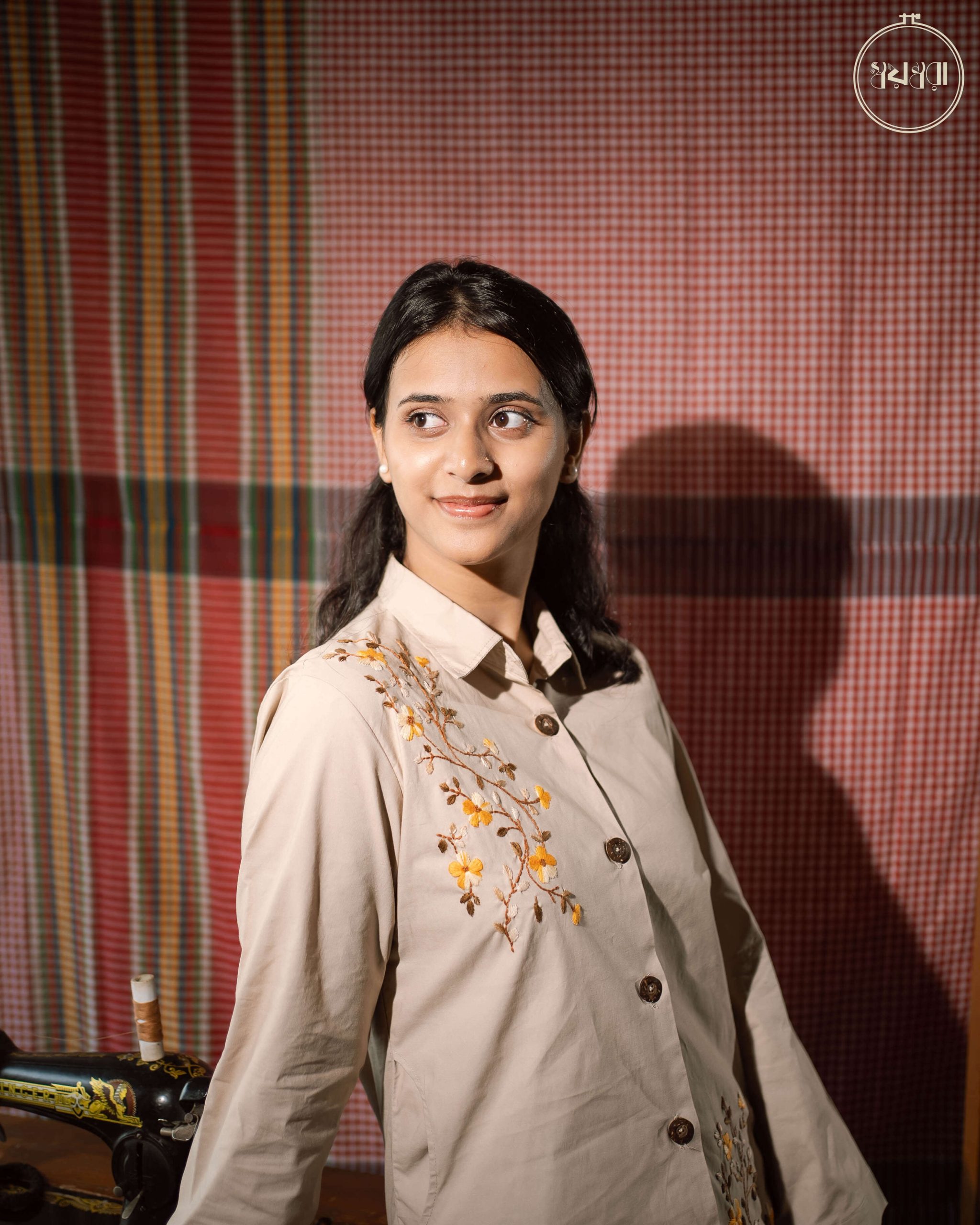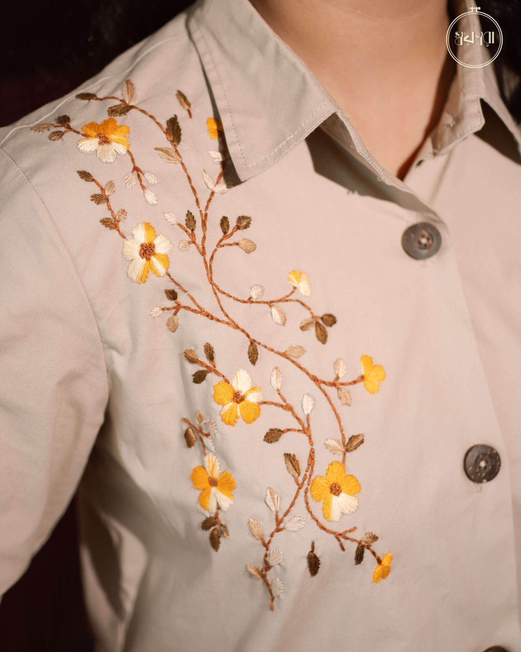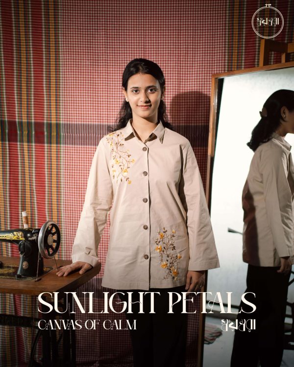 Sunlight Petals radiates soft elegance with muted tones, graceful cuts, and delicate embroidery. A gentle expression of nature’s calm in every thread.